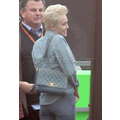 Miley Cyrus rocked a pompadour during a visit to Jay Leno, on Thursday.