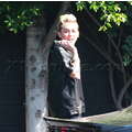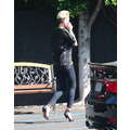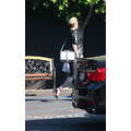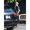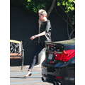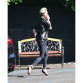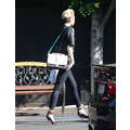 Super stylish fashiosnista Miley Cyrus heads to the studio in high heels.