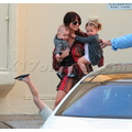 Nicole Richie wears her own Winter Kate label during an outing with a Mohawk'd Sparrow and adorbs Harlow.