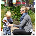 Mom and son enjoyed a trip to the park in Santa Monica on Wednesday afternoon.