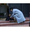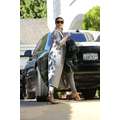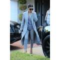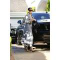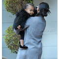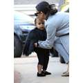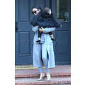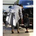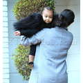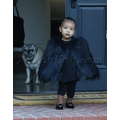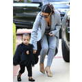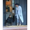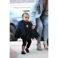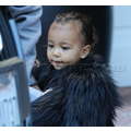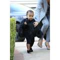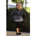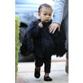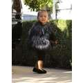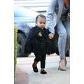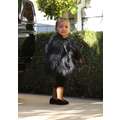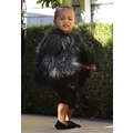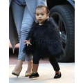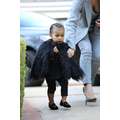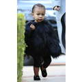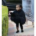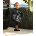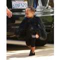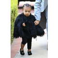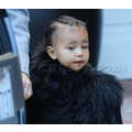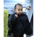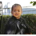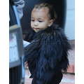 Nori wears an ostrich feather cape for a spa day with mommy Kim Kardashian.