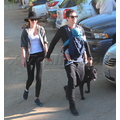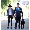 Orlando Bloom takes a hike on his birthday with wife Miranda and baby Flynn.