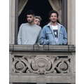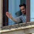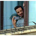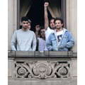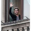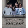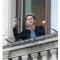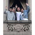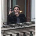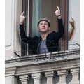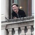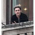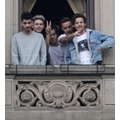 The boys of One Direction greeted fans from their hotel balcony in Milan.