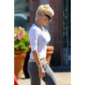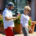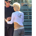 Pamela Anderson couldn't seem to keep her shirt on when she grabbed breakfast with husband Rick Salomon at Coogie's in Malibu on March 10, 2014.