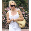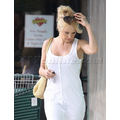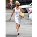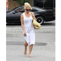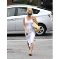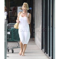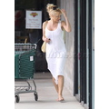 Blonde bombshell Pamela Anderson was spotted in a long white dress running errands in Malibu.