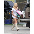 Pamela Anderson picked up her golden retriever at the vet in Malibu yesterday.