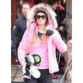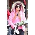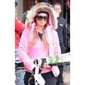 Paris Hilton hit the slopes in Aspen on Monday, and the starlet worked it in a bright pink outfit.