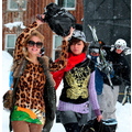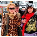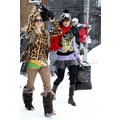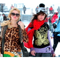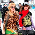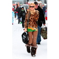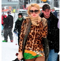 Paris remains fashionable in the snow with a wild, leopard print shirt and fur trimmed vest.