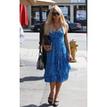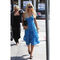 Paris Hilton waltzed out of Toast in a gorgeous blue dress on Wednesday.