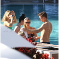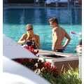 Paris Hilton and boyfriend River Viiperi hit the pool in Miami on Friday.
