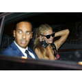 Paris Hilton was in good spirits when she arrived at VIP Room, where she partied with Justin Bieber.