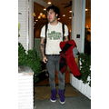 Pete Wentz shows off his new 'do and purple hi-tops!