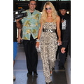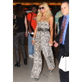Paris Hilton looks lovely in a black and white pantsuit at LAX.