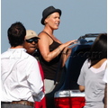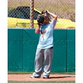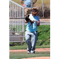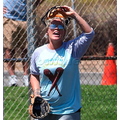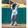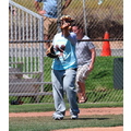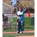 Pink plays baseball to work off the baby weight after giving birth to daughter Willow seven weeks ago.