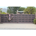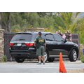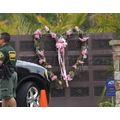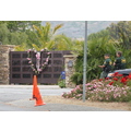 Pink decorates her gate with a big heart wreath with pink roses.