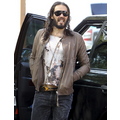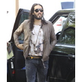 The British comedian was spotted out and about in Hollywood on Friday, and he flashed photographers a smile.