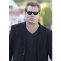Ray Liotta walking around Brentwood Country Mart carrying a Jame Perse shopping bag.