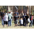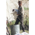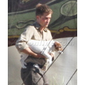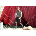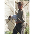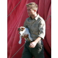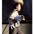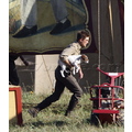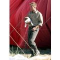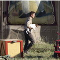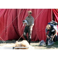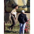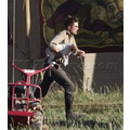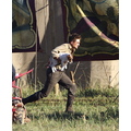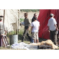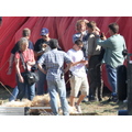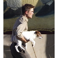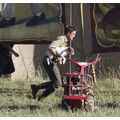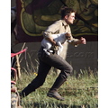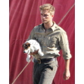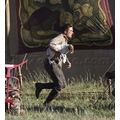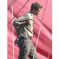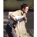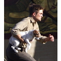 Rob Pattinson runs with a puppy in his arms on the set of Water For Elephants.