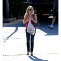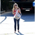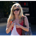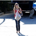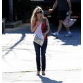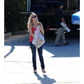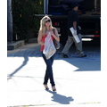 The Oscar winner ditched her neutrals for a red shirt, and we're digging it!