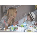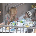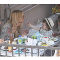 The stylist grabs a bite with her baby and bestie.