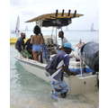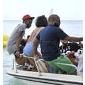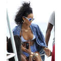 Rihanna looks awesome in an all-blue ensemble on her home beach of Barbados.