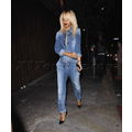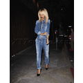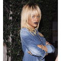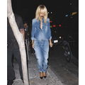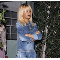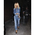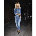 Rihanna showed off her new blonde hair -- and a denim jumpsuit! -- when she dined at Giorgio Baldi last night.