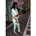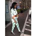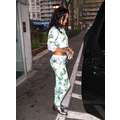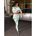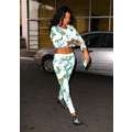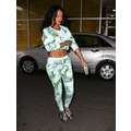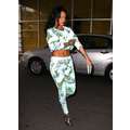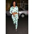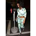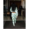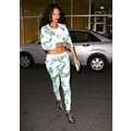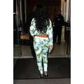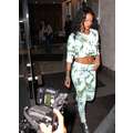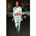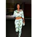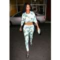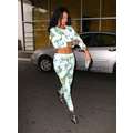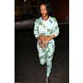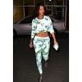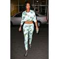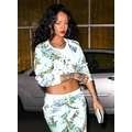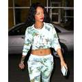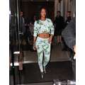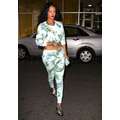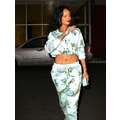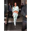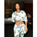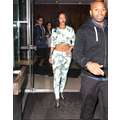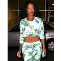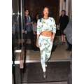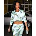 Rihanna sported a tropical-print ensemble that displayed her toned abs while heading to dinner in New York City.
