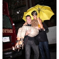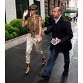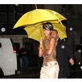 Rihanna gets swept off her feet (by her bodyguard), yesterday in the NYC rain.