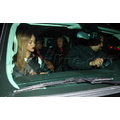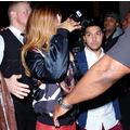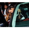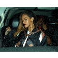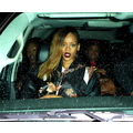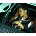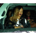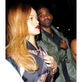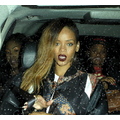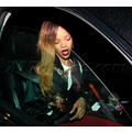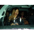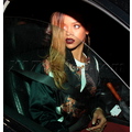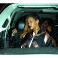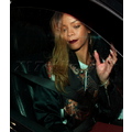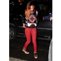 Rihanna with leather orange pants showing her tattoos while arriving at club MyStudio in Hollywood.