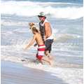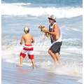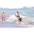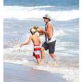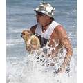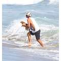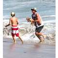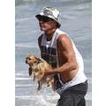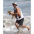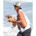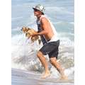 Gavin Rossdale saves the family dog, Chewy, during a family beach day in Malibu.