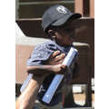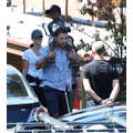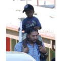 A-list film star Sandra Bullock was wearing a pair of shades and a ball cap, letting a friend carry her growing son Lou out to the car from school.