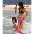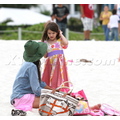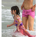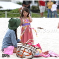 Katie Holmes takes daughter Suri to the beach while dad Tom Cruise shoots Rock of Ages in Miami.