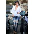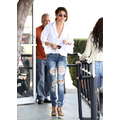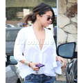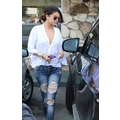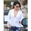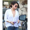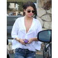 Selena Gomez goes braless in a button-down white shirt for a lunch with friends in Encino, Calif., on Jan. 31, 2014.