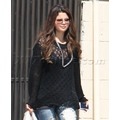 Selena Gomez sported ripped jeans and a crochet sweater Friday in the LA heat!