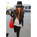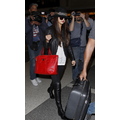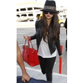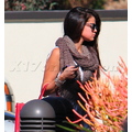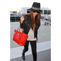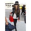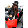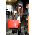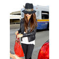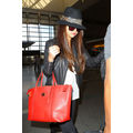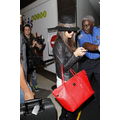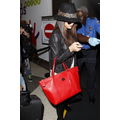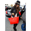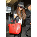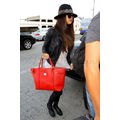 Newly single Selena Gomez with a red bag in Hollywood before heading to LAX.