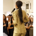 Nicole Scherzinger looks golden in a gorgeous suite while singing at Fashion Night Out Event