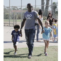 The singer was in a great mood when we spotted him cheering on his kids at their soccer game over the weekend.