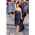 Selena Gomez dons navy dress as she appears at the studio for Jimmy Kimmel in Hollywood on Oct. 15, 2014.