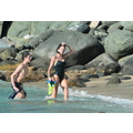Stephanie Seymour and her family were snapped on the beach in St. Barth on Tuesday.