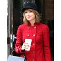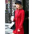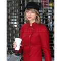 Taylor Swift rocked a red coat (and her trademark red lips!) when we snapped her in NYC on Saturday.