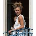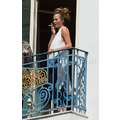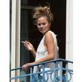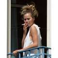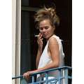 Yuck! Chrissy Teigen lights up a cancer stick on her hotel balcony in Cannes on Friday.