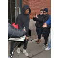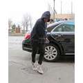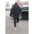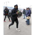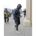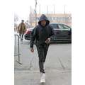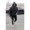 Kanye West wore a pair of his new Yeezy sneakers when we snapped him en route to a New York fashion week show.
