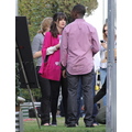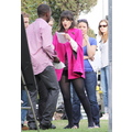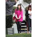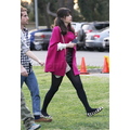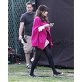 Zooey Deschanel looked darling in a pink poncho/cape while shooting New Girl in West Hollywood.
