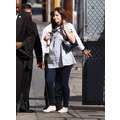 Looking oh-so-adorable Zooey Deschanel arrived at the Jimmy Kimmel Live! show. The New Girl star donned a sailor-inspired smock and jeans before heading into the studio in Hollywood.