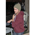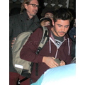 Zac Efron hugs a fan after a long day of shooting his new romantic comedy.