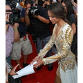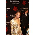 Zoe Saldana looks flawless in a gold dress at the Colombiana premier in Florida.
