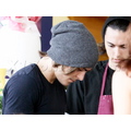 Zac loses his pants on the way into Color Me Mine for a Make A Wish foundation event!
