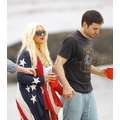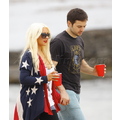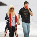 Xtina and her man take a romantic stroll with her son Max on the 4th of July.