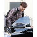 Well, barely! The actor struggled to get into his Tesla due to the fact that the person next to him parked like a jerk.