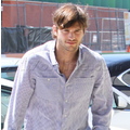 Ashton Kutcher is ready for a long hard day on the Two and a Half Men set.